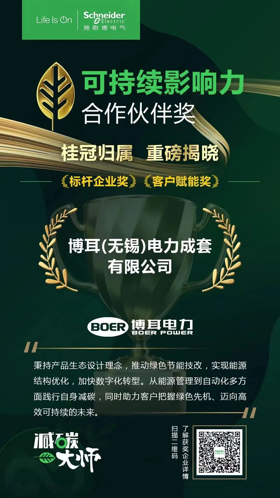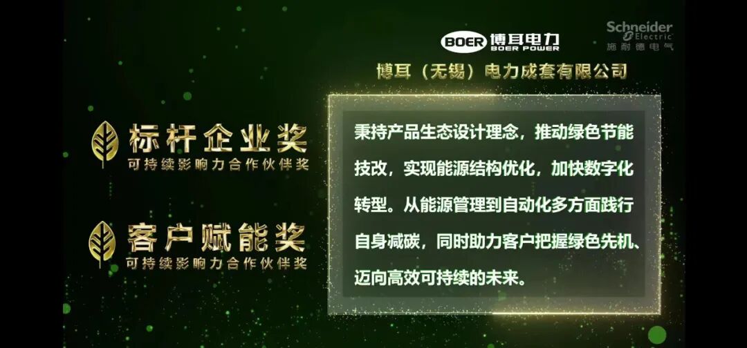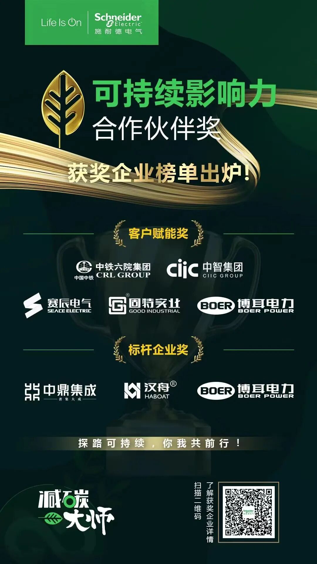 施耐德电力首届表彰合作伙伴可持续影响力的全球奖项颁奖仪式直播杀青了,感谢大家一起鉴证荣耀时刻,恭喜博耳集团摘得《标杆企业奖》、《客户赋能奖》两项桂冠!