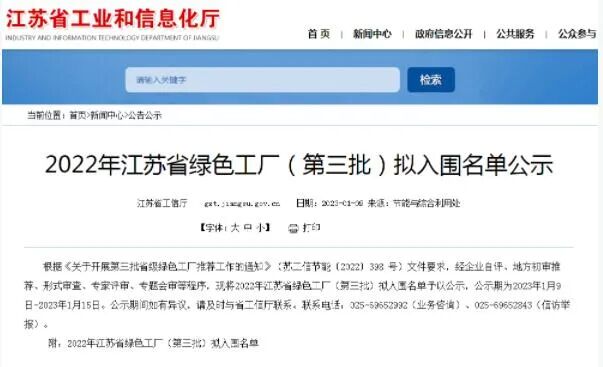 近日,博耳电力被授予 “江苏省绿色工厂” 称号,博耳电力本次入选江苏省绿色制造企业,体现了政府及社会对博耳电力节能低碳的认可,将有助于提高企业品牌知名度,提升公司核心竞争力。